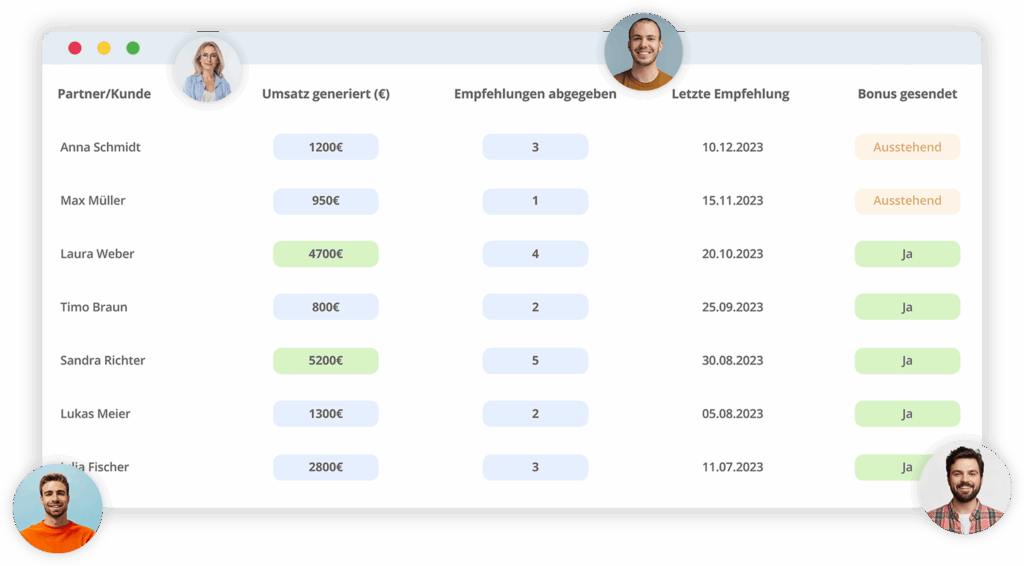 Verfolge genau alle Umsätze & Folgeumsätze, die du durch das Empfehlungsgeschäft generierst