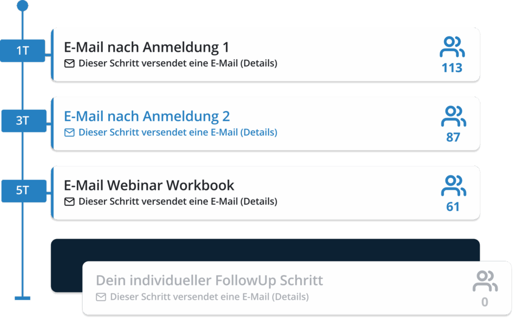 - Die Teilnehmer werden regelmäßig vom System bespielt und weiterhin auf dich und dein Angebot aufmerksam gemacht